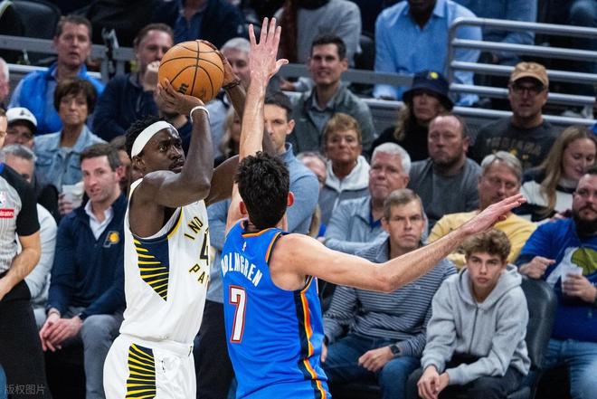 但下半场他判若两人,进攻端找回手感火力全开,第四节更是强攻冲击打2+1帮助步行者取得微弱领先。第一个加时赛里他继续冲击造犯规站上罚球线。最后一攻,他面对亚历山大单挑上篮打进,追平进入第二个加时。但第二个加时里,他被亚历山大造到第6犯直接毕业。